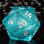 Introducing the awe-inspiring "Tsunami" Giant D20 Dice, a magnificent creation that will engulf your tabletop adventures in a wave of wonder and excitement. Prepare to be captivated by its colossal size, measuring over twice as large as a standard D20, and its mesmerizing blue glittery liquid swirling within.