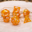 Shimmering dice sets like this one are prized for their luster and shine! After all, who doesn’t feel joy when watching light filter through your favorite dice like a miserly dragon? We recommend keeping these dice in a dice bag whenever not in use to protect their gleam, and roll with moderate force— save the nat 20 strength rolls for in-game!